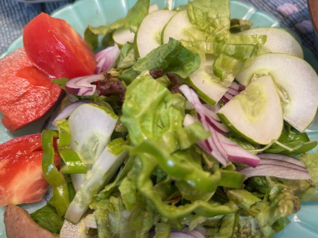 色々とお互いの畑の恵みが共演!(ちなみにパンは、自家製楽健寺酵母パンのお土産)