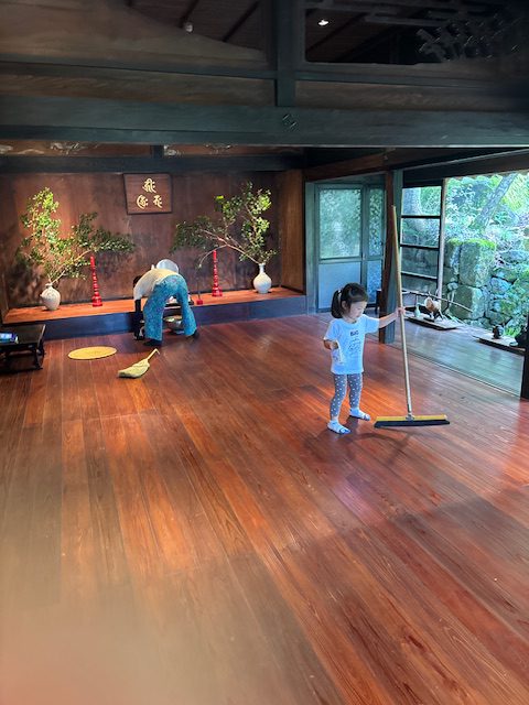 4日目には、英彦山の宿坊「守静坊」にて作務や掃除をして、