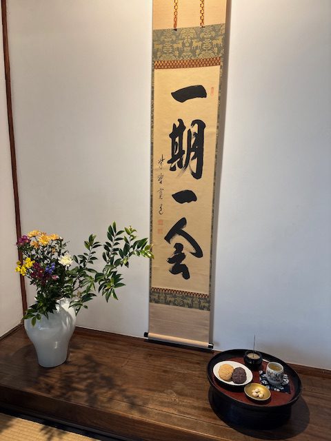 そんなわけで、今日は広島の祖母が使っていた「一期一会」のお軸を掛け、お盆にはおはぎや初物銀杏も一緒にお供えを。