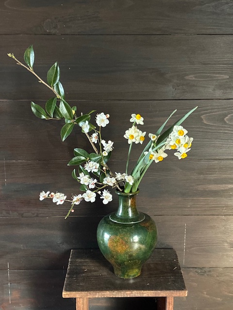 嬉しさもあり、せっかくなので、庭の水仙や椿も一緒におうちで飾りました。^^